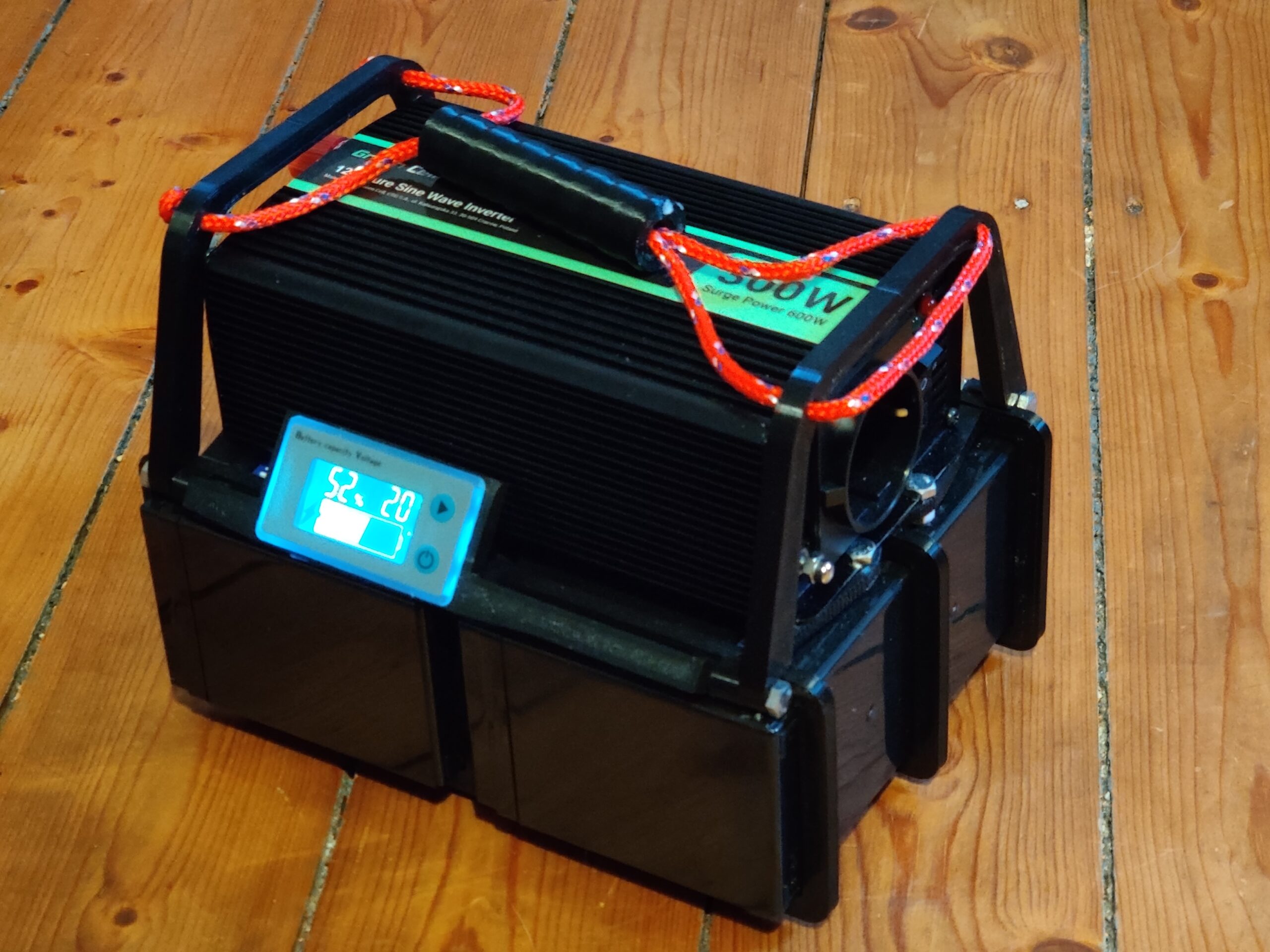 • 150W Peak bei maximaler Spannung der Akkus. Normalerweise würde ich nie mehr als 100W dauerhaft verbrauchen.